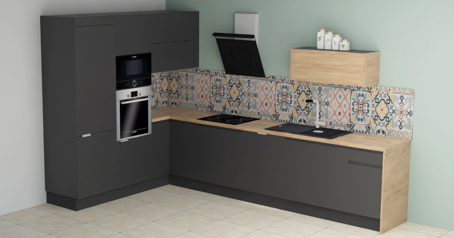 Possibilité de créer un ensemble « full black » intense et tendance (façades, intérieur des portes, caissons, poignées)